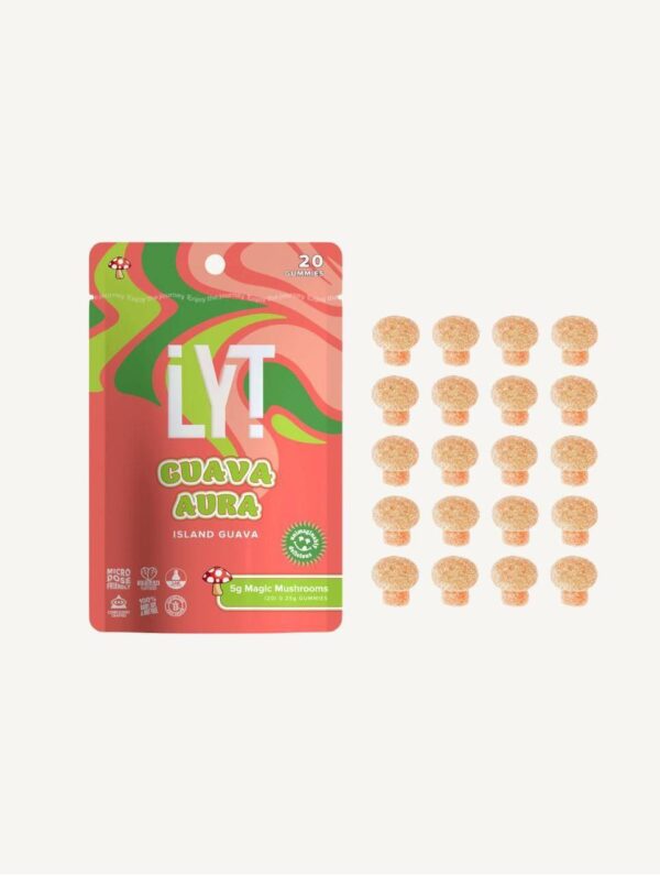 LYT Guava Aura Gummies are a type of edible product that contains magic mushrooms, specifically designed for those looking to experience the effects of psilocybin in a more palatable form. Each bag contains 5 grams of magic mushrooms, which can be consumed in various dosages depending on the desired effect.
